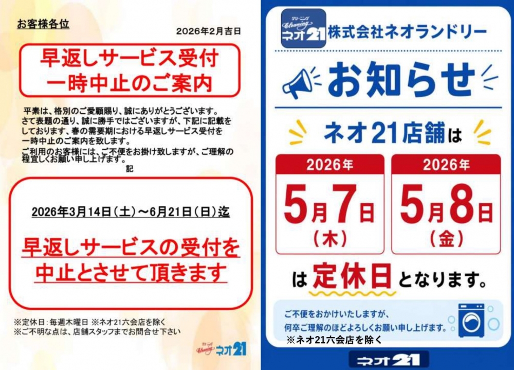 - 2026年早返しサービス中止について
